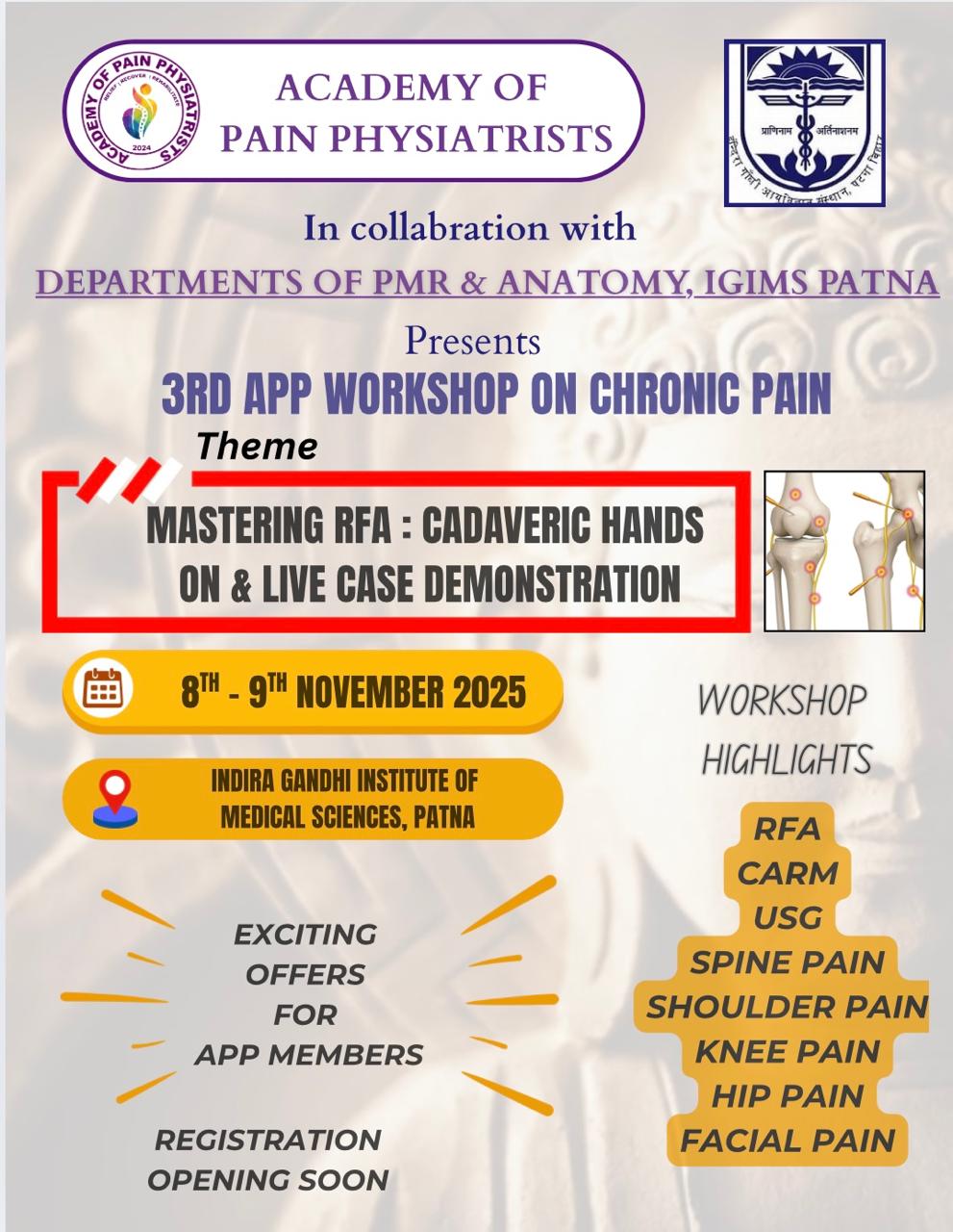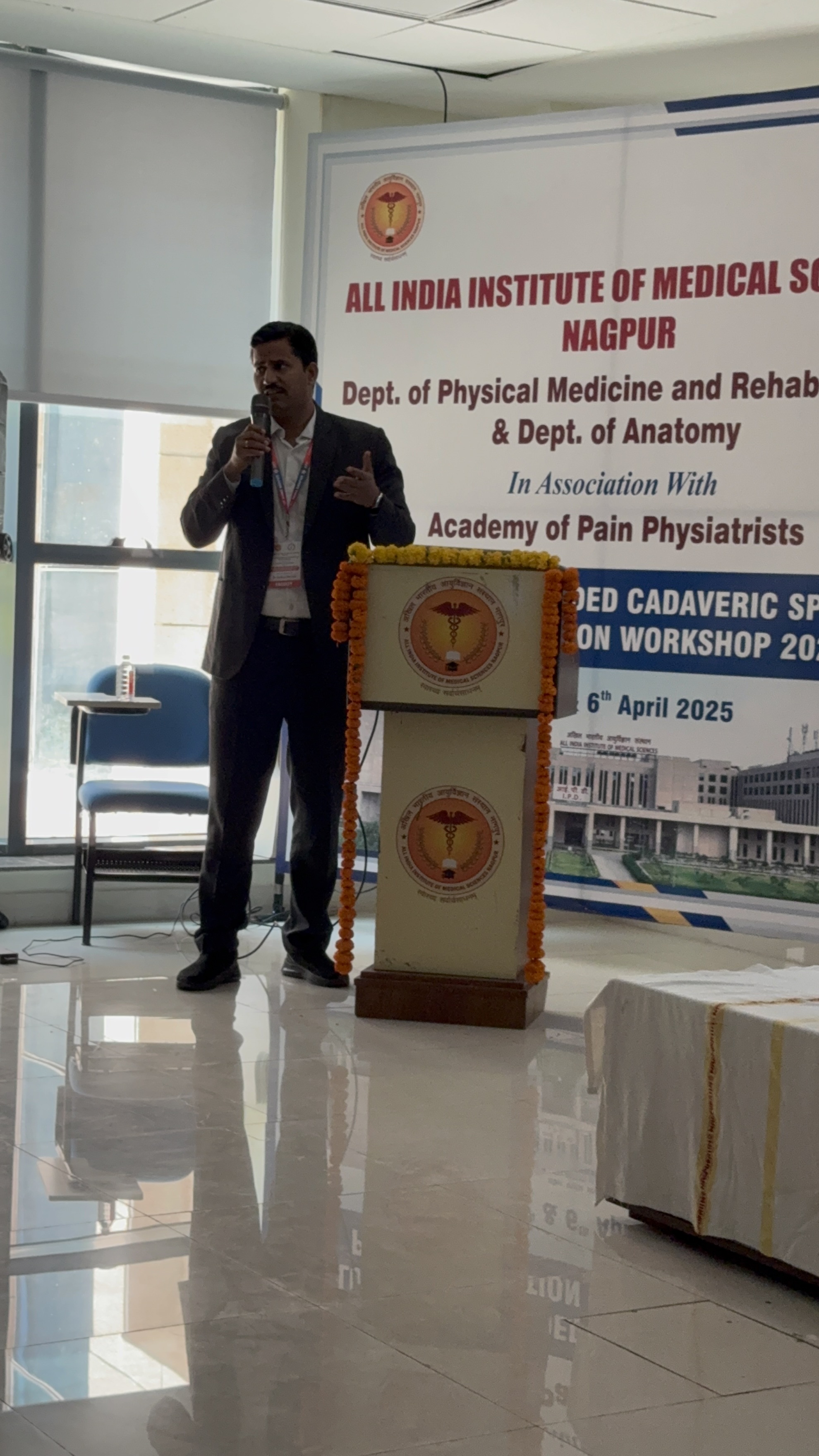Academy of Pain physiatrists banner AIIMS Nagpur workshop glimpse AIIMS NAGPUR FLUORO workshop 2025 AIIMS Nagpur fluoro workshop 2025 AIIMS NAGPUR WORKSHOP 2025 AIIMS Nagpur workshop 2025 "Mastering RFA (Radiofrequency Ablation) & Live Case Demonstrations".